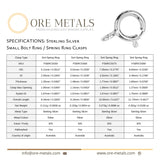 Bolt ring clasps, also known as spring rings, are classic circular jewellery fastenings designed for secure and discreet closure. Made from solid 925 sterling silver, these clasps feature a spring-loaded internal mechanism that opens when the attached lever is pulled back, then snaps closed to form a continuous ring. Their simple, time-tested design makes them ideal for everyday jewellery where reliability and a clean profile are key.